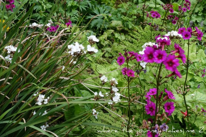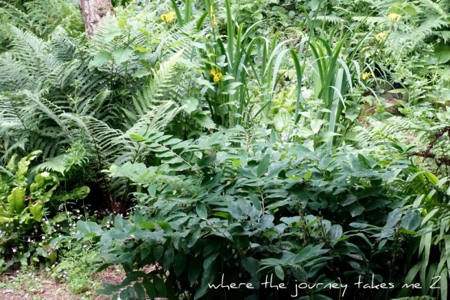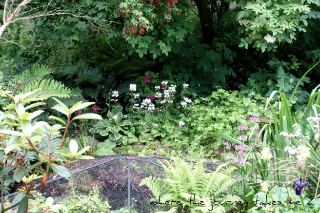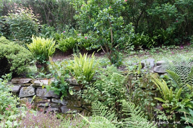 The woodland walk is one of my favourite spots I tried to introduce plenty of leaf shapes and keep everything very natural looking choosing plants very carefully. The ferns just set themselves – they seem happy in dry or wet ground.