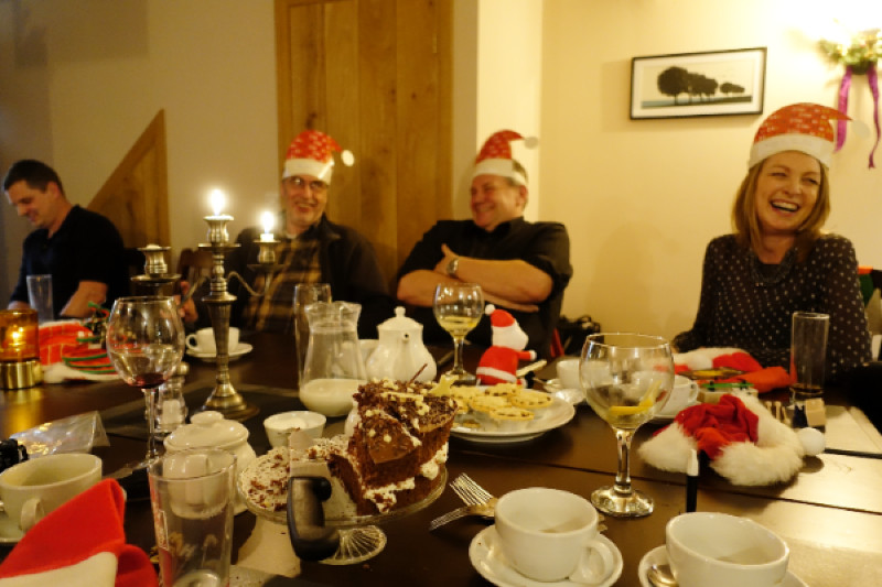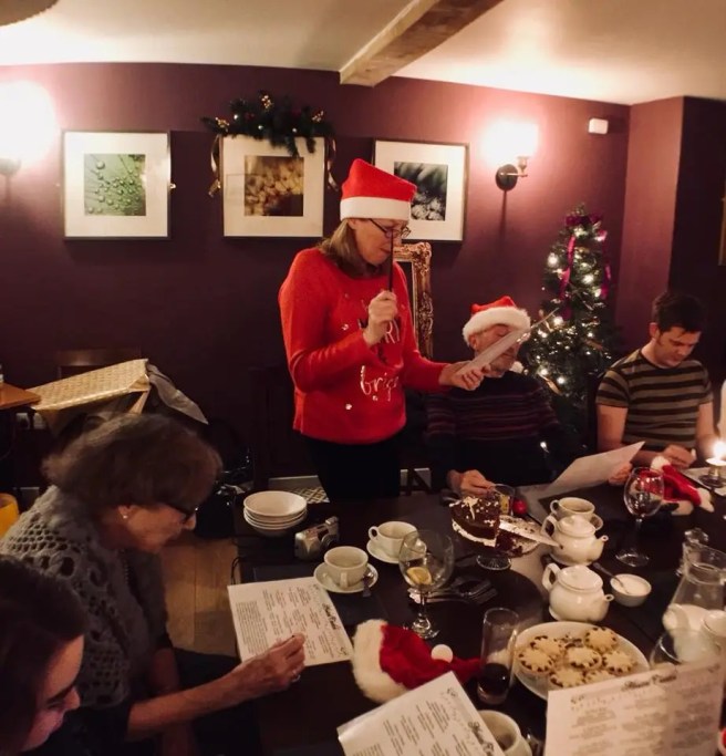 In normal times and because not all of us could be together on Christmas Day we would have a big family gathering just before Christmas to swap our Secret Santa presents (but not open them). You try disguising the fact you have bought an ironing board or wheelbarrow in wrapping paper! We would often use the pub/restaurant where my daughter worked to meet and have sandwiches and home-made chips laid on with mince pies for afters and wear our best santa hats and jumpers of course.