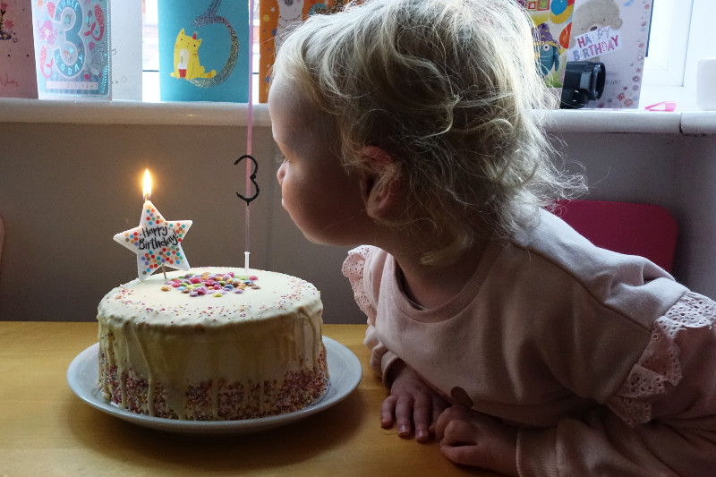 I made the cake – it was the usual disaster. Sprinkles had been requested so it should have been simple enough but the buttercream had far too much air in it so didn’t go on quite as smoothly as I would have liked and the white chocolate dribbles didn’t dribble quite where intended. Of course I did it in a rush too, but little Sweetie loved it.