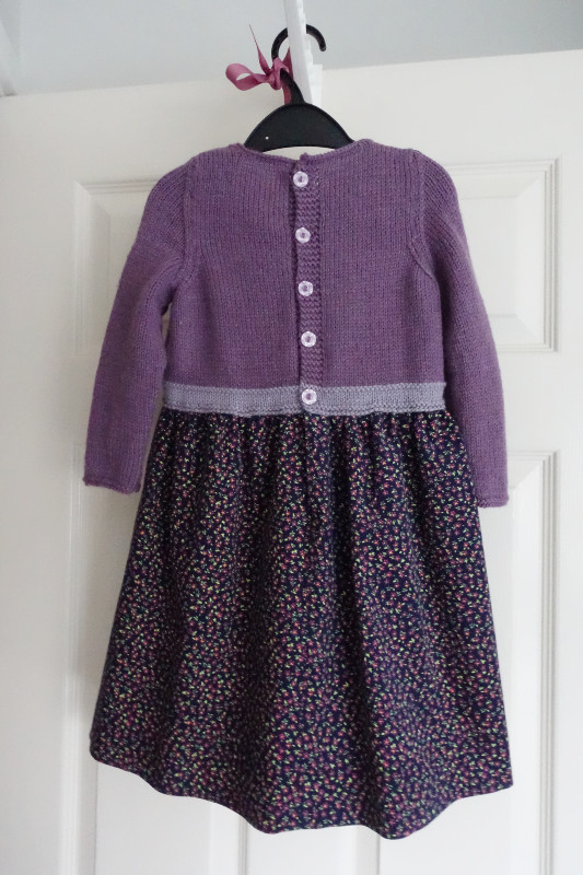 Love Sweetie’s dress. You did a wonderful job of bringing together the different fabrics and techniques. Like a tricky jigsaw puzzle–especially the knitting component. Glad you were able to fit all the furniture in the car, but sorry to hear about the car issue. Must be the week for it–DH’s vehicle lost all electrical power on his commute home one night last week. Luckily, he made it across a long two lane bridge before it gave up entirely. Ah well. Safe travels to North Yorkshire.