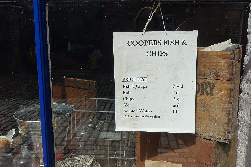 If only our last night supper of fish and chips in Scarborough had still been at these prices! I handed over two £20 notes for ours – 3 x Fish and Chips, 2 small sausage, one mushy peas, one curry sauce and our box of standard chips to share (we had our own tin of baked beans to add to this as we are vegetarian).