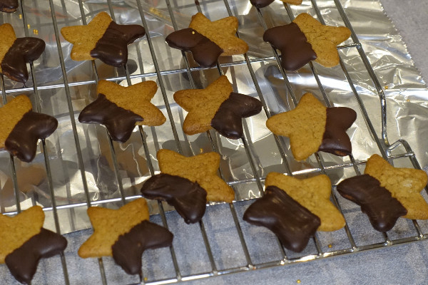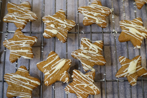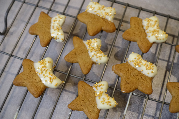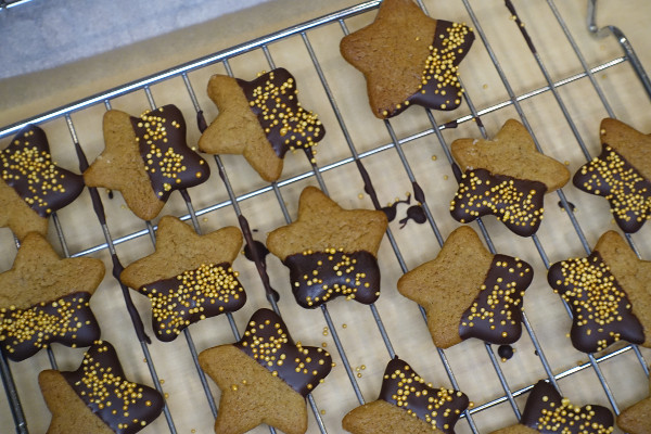 It has been like Santa’s factory here today. I finally made the last of the gifts and today it was the gingerbread stars. It sounded quite easy, but in fact because my mind kept wandering I made a few mistakes here and there; nothing too drastic that couldn’t be fixed, but annoying all the same.