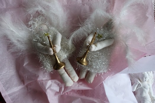 So we made a star from some gold glittery card. It might be the only thing I might swap out, when he is not looking, as I do like my little fluffy angel.