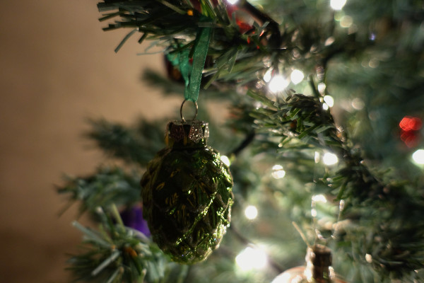 It has made an appearance again this year. We will be away for Christmas so in a way it made sense. It has been patiently waiting in the corner of our living room for Master Freddie to come and decorate it, and I must say he made a fine job, though my heart was in my mouth a few times when I heard the chink of my delicate, glass vintage baubles (some of which must be as old, if not older, then me.