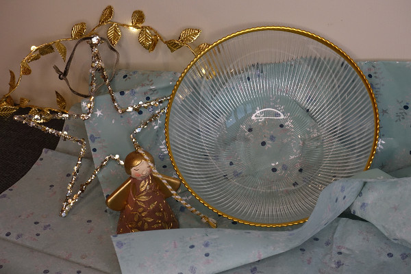 The little gifts I bought for my two daughters are carefully wrapped in tissue and I would normally place them in their stockings, but this year’s gifts are rather too large and I had to buy a gift bag to use instead. After going from shop to shop I failed to find one that was just the right size and have had to make do with what I could get, never mind….. I am sure they will like the contents just as much. To go with these little bits and pieces I picked up some lovely gold pillar candles in Sainsbury’s in their ‘seasonal’ clearance sale for ÂŁ1.88. I bought one for myself too as they seemed such a bargain.