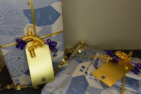 Our Secret Santa gifts have been carefully wrapped – DH was buying a gift for our younger daughter and my Secret Santa is for my mum. I got her two pairs of pyjamas (though the medium, supposedly size 12-14, do look very large to me), a Hamish Macbeth mystery book and a bar of ginger chocolate.