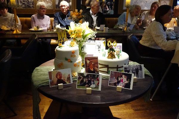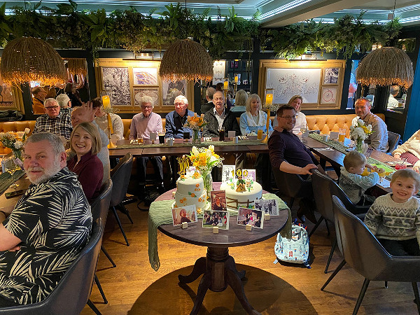On Sunday, the day before, the family (the ones she hasn’t managed to outlive) gathered together for a celebration of mum’s special birthday. I had organised a private room at the Keys in Yarm near to where mum lives for a two course Sunday lunch. The organiser at the venue, Kimberley, couldn’t have been more helpful; the tables were beautifully decorated with flowers and candles – we just added banners, balloons and scattered lots of photos of mum’s life around.