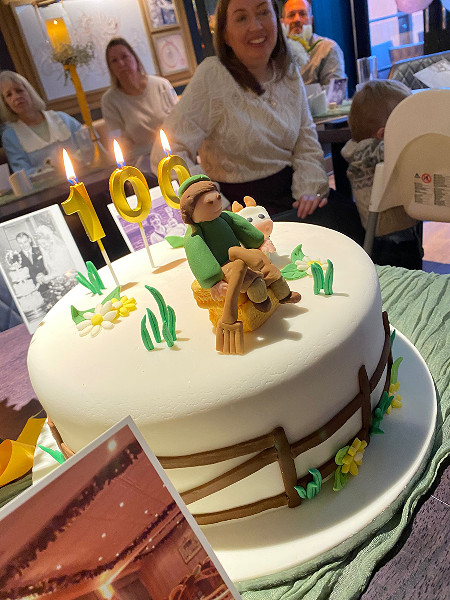 My sister made the cakes, they were wonderful. One had a lovely scene of mum when she was in the Women’s Land Army during the war (a job that she was always very proud of and for which she has a badge) and the other she decorated with flowers. All the flowers and decorations on the cake were handmade by her and her little team (husband, daughter and friend) and I know they were up until the early hours getting them finished.