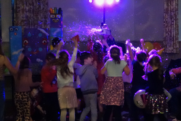 Master Freddie’s mum hired the local village hall and a wonderful party entertainer called Nellie B, who was happy to do a mix of traditional games, team games, dancing and the highlight at the end was the snow machine, which had all 23 partygoers screaming with excitement.