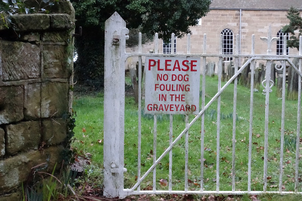 Once again I could not believe that these notices on graveyard gates are necessary…who in their right mind would let their dog foul in a graveyard.