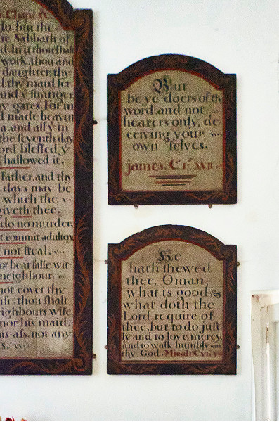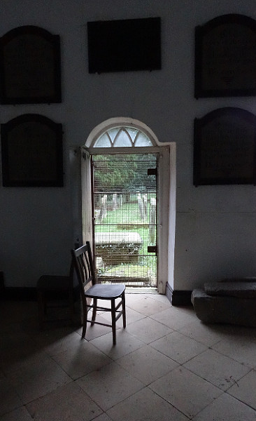 There is a large expanse before the alter and this side door is left open presumably to allow a little more light to flood into the place, revealing all the plaques of bible texts and tributes that adorn the walls.