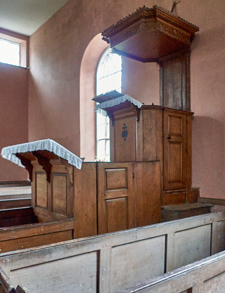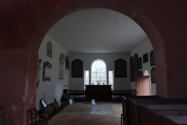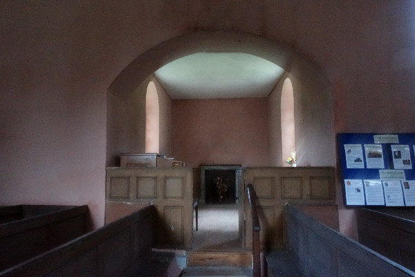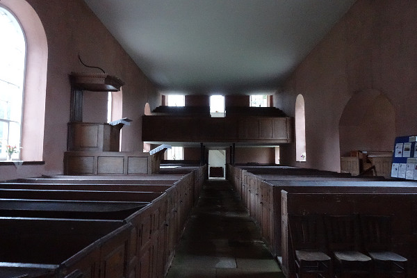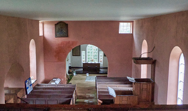 Like many of these old churches, there has been rebuilding and additions over the years and the version you see here took place in 1785, replacing an earlier medieval building. The first thing that strikes you is the flat plastered ceiling running the whole length of the church and the beautiful rose coloured plaster of the walls. Quite often in churches you would find a vaulted ceiling and this flat ceiling feels quite out of place and very low, cutting through the windows up in the gallery.