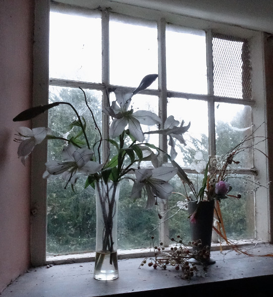 The whole place had vases of mainly dried flowers dotted around on dust laden window sills with a sprinkling of pine cones or seedheads, but a hint that someone is caring for this redundant church. I hope my photos do it justice, the light levels were so low making the pictures grainy but I have not adjusted them as it adds to the atmosphere that we experienced…quietly we crept around feeling like an intrusion.