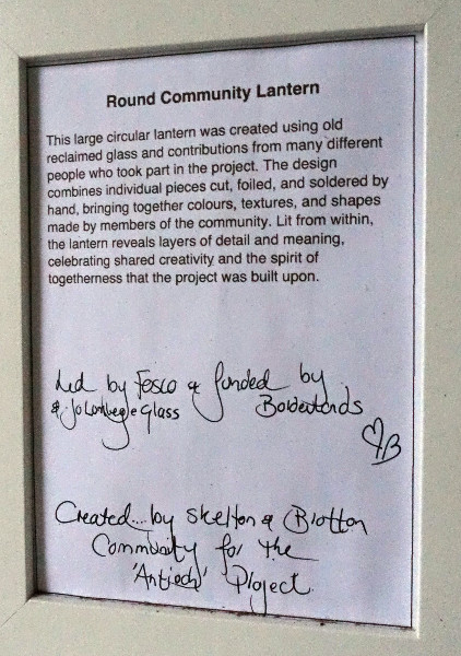 On the widow sill at the top of the staircase we found this rather gorgeous ‘crown’ of coloured glass – a Round Community Lantern. I am sure it is a most beautiful sight once lit.