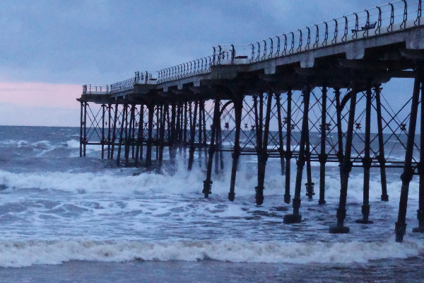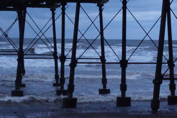 The Pier was empty now – though we noticed from our apartment window that many brave souls have been walking up and down all week no matter what the weather. It had become bitterly cold and the tide was coming in quickly with waves crashing about underneath the structure.