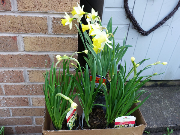 On Friday when we picked up the car we called at the garden centre and bought 3 bags of compost on the 3 for £15 deal and also a reduced pot of daffodils from £12.99 to £6 and another 3 small narcissi for £4.