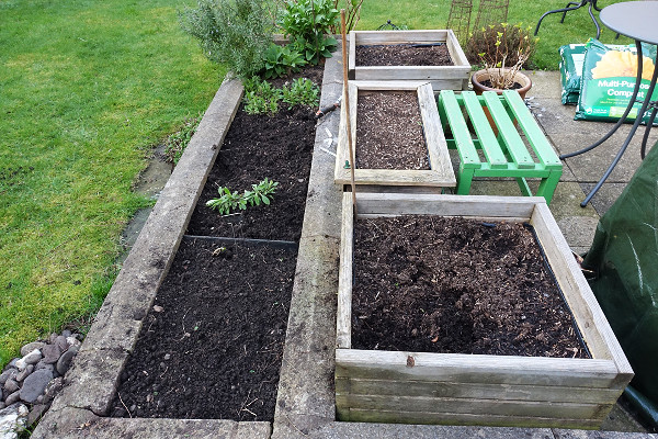 I intended to set some outdoor seeds under cloches, but dithered as I couldn’t work out a good rotation of the 4 beds where I usually grow the vegetables and salad crops. They are all different sizes, not very big and are a problem if I grow potatoes or two courgette plants, usually one in each of the square tubs.