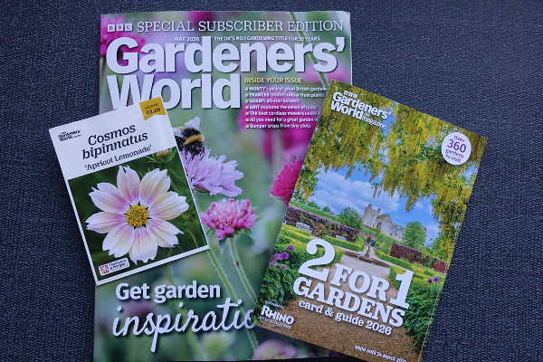 I took advantage recently of the Gardeners’ World offer of 6 issues for £12 plus the 2 for 1 entry card into many gardens. With the first issue I also got a free packet of cosmos seeds which I will sow this week. I note from the cover it is a special subscribers issue so maybe there is some content left out or fewer pages than the full price version.