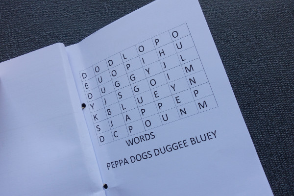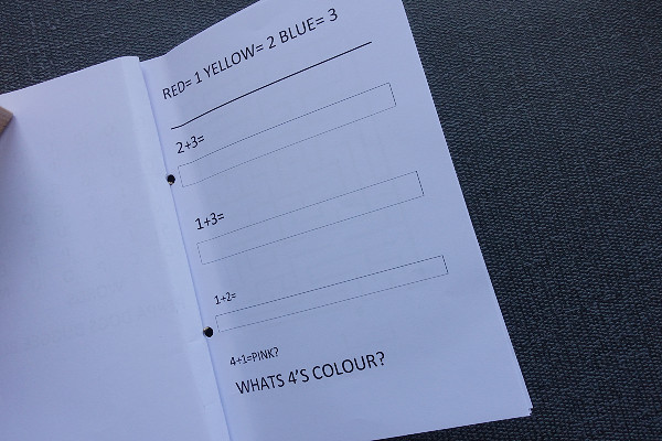 Inside, he created 10 pages of different puzzles by himself, including this simple ‘word search’ and this colour puzzle as well as a couple of mathematical puzzles.