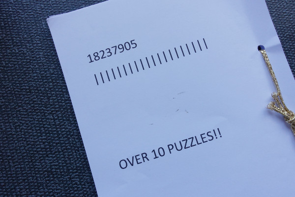 He had a tagline selling point saying ‘over 10 puzzles’. He also wanted the price sticker to say 30p or 50p depending on people’s means to pay, which I thought was very sweet and thoughtful!!