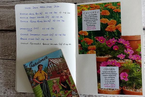 When I can, I keep escaping into the greenhouse and sowing a few more seeds. I have at last got the courgette seeds started. I log everything in my note book and I was quite surprised when I looked at the date on the courgette packet – they should be sown by…2022, however they did grow last year successfully so fingers crossed.