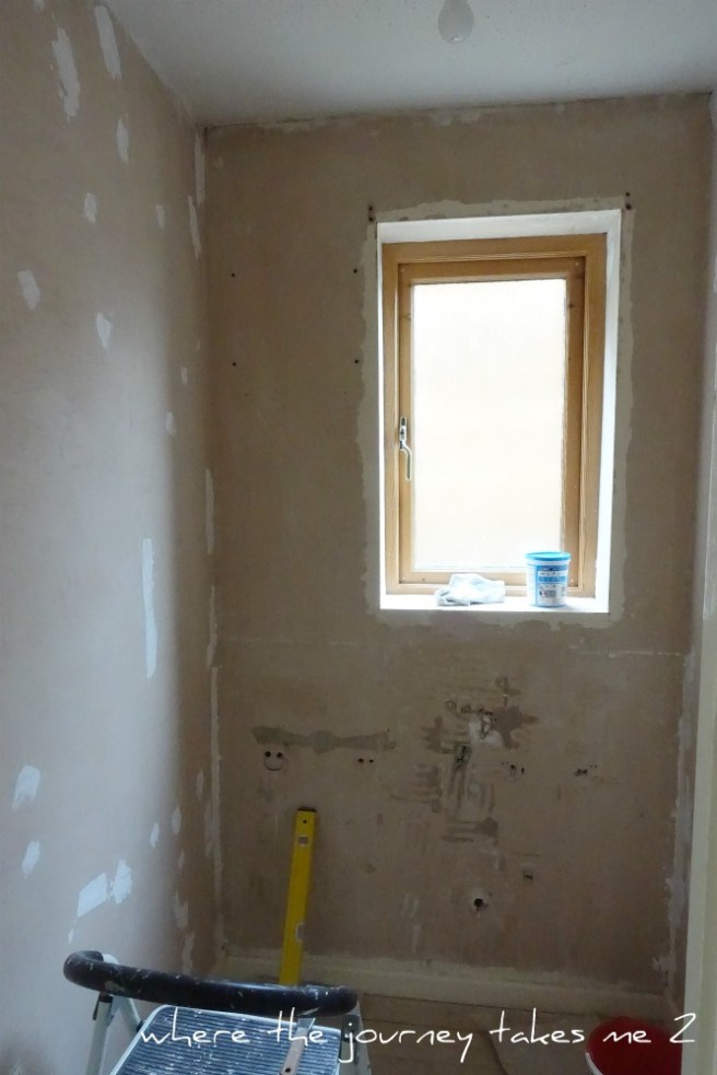 Progress on the pantry is steady – DH has stripped the walls of both paper and the old magnolia paint beneath and has started filling in holes. The back window wall needs a skim of plaster as does the ceiling – so now we wait to have someone come to do that.