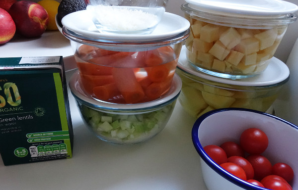 DH prepped the veg for a curry yesterday morning and made enough for our evening meal and for us to take with us to Cheltenham. I will pack a packet of Tilda wholegrain basmati rice that will cook in 2 minutes in the microwave (I did check there is a microwave!)