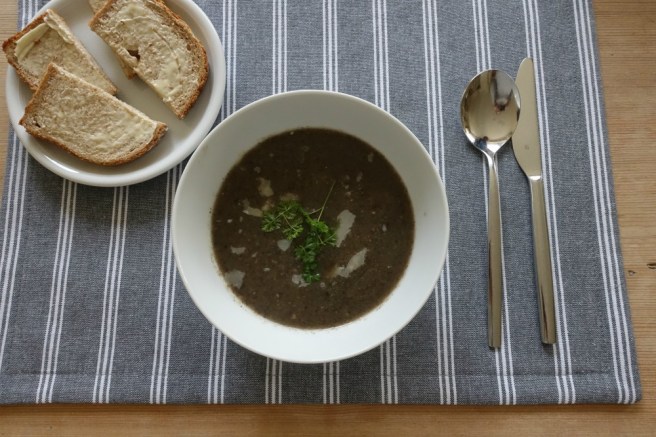 You can add more sliced, browned mushrooms when serving if you wish and garnish with a swirl of cream or add parsley and Parmesan and throw in some croutons.