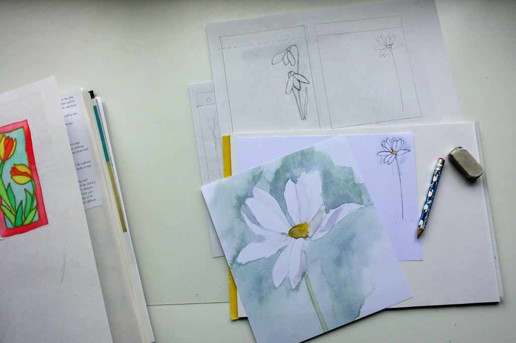 I have been snipping off the heads of the chamomile that self-seed around the seaside garden to put in the flower press, they make wonderful cards