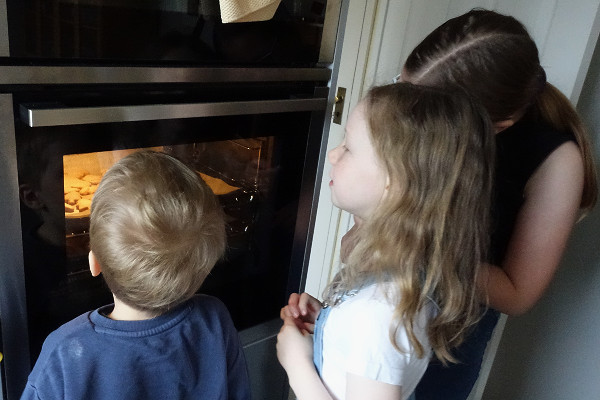 The 10 minute wait for them to cook, with watchful eyes on the oven…… and at last the decorating could begin.