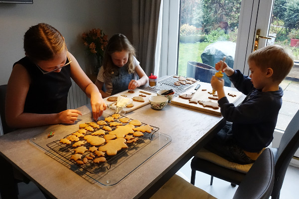 As requested by Master Freddie, today was gingerbread day and as Little L and Sweetie were here for the weekend all the grandchildren took part (though baby Chocolate only helped with the decoration as he arrived later).