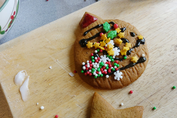 Little L is quite artistic and was able to control the icing better. I love her gingerbread man with a moustache!