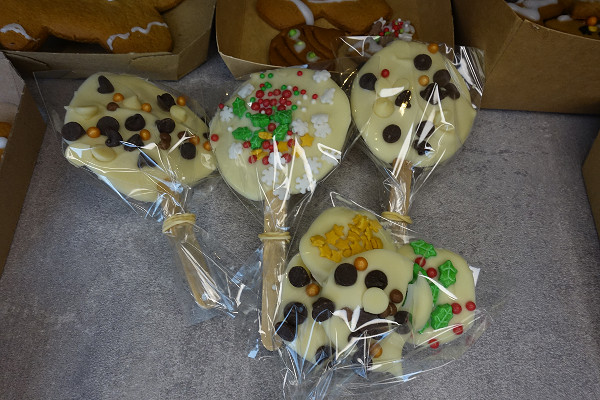 With the remains of the white chocolate and sprinkles we made some chocolate lollies for Christmas.