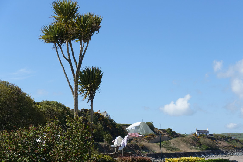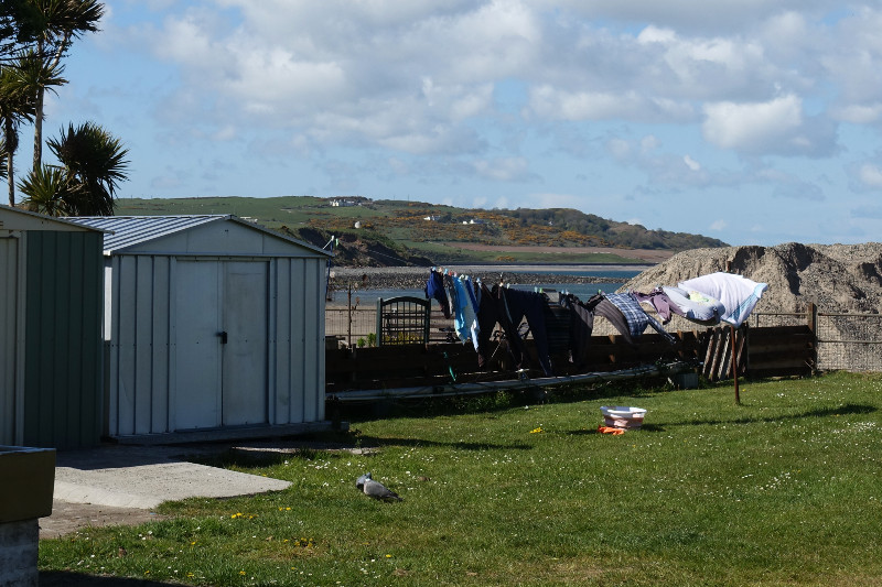 We have a new neighbour in place now on the other side of our trellis in a touring sized van, much shorter than Eric’s static van so our plants in the border are not quite so sheltered from the sea wind and have wind burn.