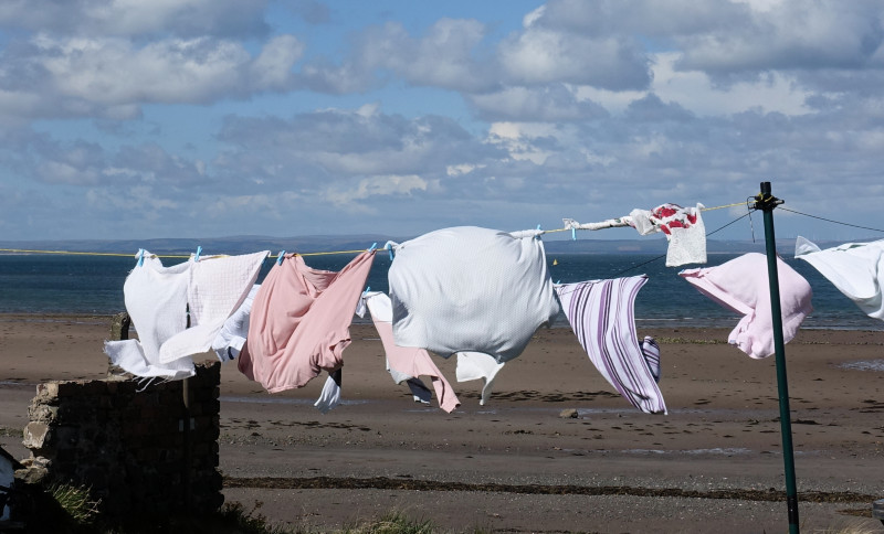 After a hard night of howling winds around the caravan that kept me waking on and off I too was eager to know what the sea would be like today as it is usually an indication of what weather we might expect for the day. On drawing back the curtains it was no surprise to find it quite choppy with white frothy waves rolling up onto the shore creating a bubble bath of foam – definitely a stay inside day and quite the opposite to yesterday when, after a night of heavy rain, I opened the curtains to find a calm sea that was glinting in the morning sunshine….and I knew from this that it was going to be a good day.