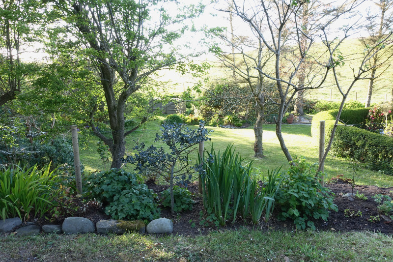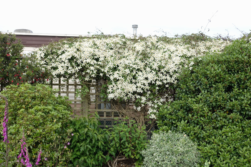 When the clematis comes out we don’t see the caravan though we had specially left a little window in the planting so Eric could sit out in the sunshine and wave to us.