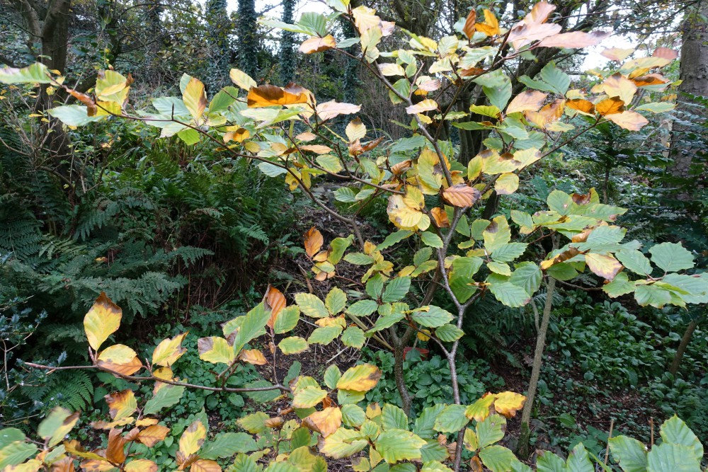 The weather must have been quite bad whilst we were away as there is seaweed strewn over the little steps down to the beach, suggesting some very high and forceful tides. Â I had a mind to collect some seaweed for the garden but then got diverted taking photos. There are still a few pockets of colour here and there in the garden and the trees are turning a lovely golden colour before the leaves fall.