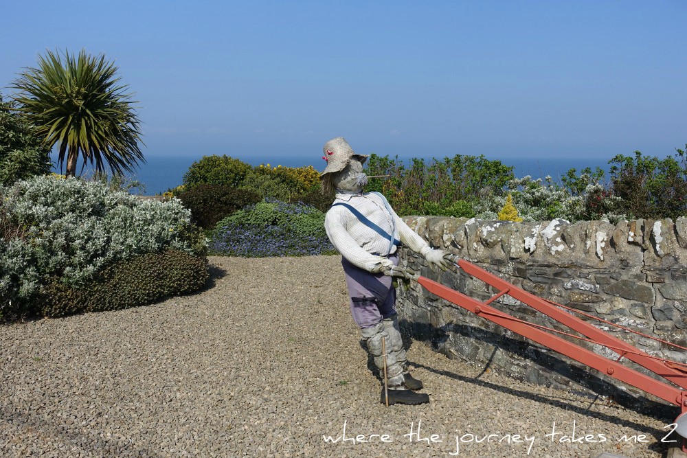 Just as you leave the main stretch of houses and before the doctor’s house that stands alone at the junction of the low road (which is now only a path and closed to traffic) is the Community Garden kept neat and tidy by volunteers. The scarecrow was part of the village Scarecrow Competition last summer but was so well liked it has remained in the garden since.Â