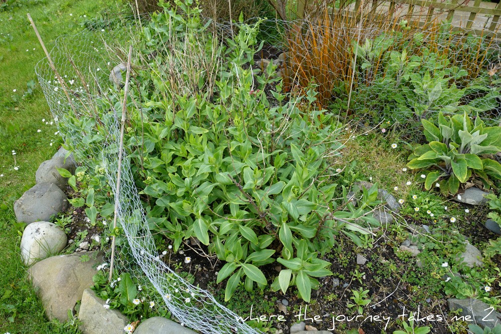 So far the rabbits have left them alone but I have to cover the roots of the hydrangea with large stones to prevent them digging and nibbling them. I think the ivy needs a bit more of a trim tomorrow then, weather allowing, I will be moving on to the trellis border.
