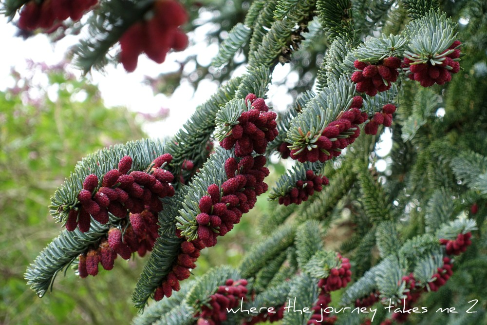 There is nothing so lovely as a few raindrops and I just had to take one or two quick snaps. I absolutely love these little cones on this pine tree they are like tiny raspberries.