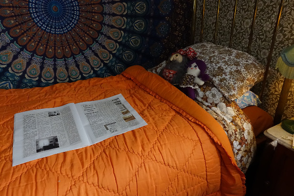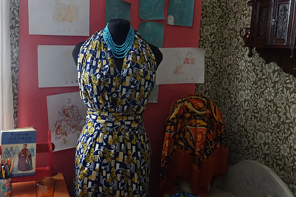I was met and given a wonderfully warm welcome by Laura, the curator of this museum, and one of the local student volunteers. It was through Laura that DH and I made this visit; we had been considering a trip for goodness knows how many years but never quite made it. The purpose of our visit was to view the bedroom in the Holst house that has been temporarily changed (as far as possible) into that of a 1970’s fashion student as part of acknowledging the final residents of this famous house, the Garlicks, who rented out rooms to the fashion students from the art college at that time.