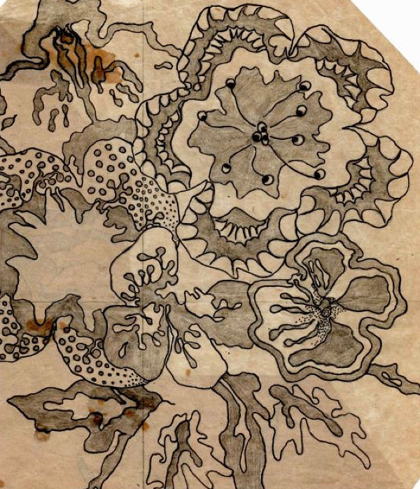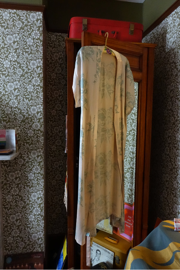 The wardobe above was so similar to the one I had in my room at both houses and the kimono dressing gown hung on the door was made from my very first printed length of fabric. We had to create a design that incorporated an element of pattern and would be printed in one colour and repeated.