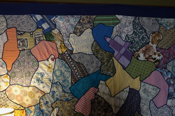 This beautiful quilt was hung on the wall, which I believe is on loan from the lady who made it and each of the patches is a genuine 1970’s fabric.