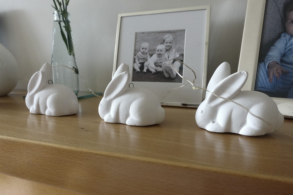 No matter how different it is this year I didn’t want to let Easter slip by without acknowledging its presence and even though we will be spending it on our own I felt a little decoration seemed in order. I brought down the twiggy decoration with the butterflies that I made last year (it had been sitting on top of the wardrobe in our spare room) and reused this. I shall probably dismantle it after this Easter and make something new for next year. I love the very simple wooden bunny cut outs I bought earlier this year when I went to Hobbycraft.
