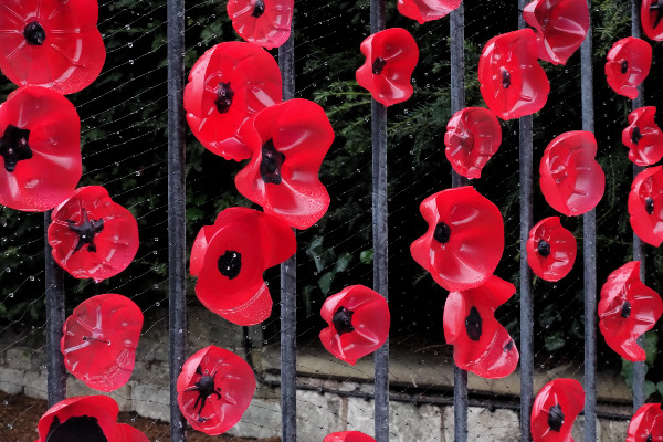 Back in November my daughter helped to decorate the railings outside Little L’s school with these poppies made from plastic bottle bottoms that she and some of the school children collected and painted.