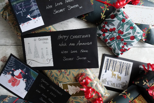 I turned old Christmas cards from last year into money and voucher envelopes, they looked quite effective mounted onto some black envelopes I had in my craft cupboard with the messages written in a silver coloured pen.