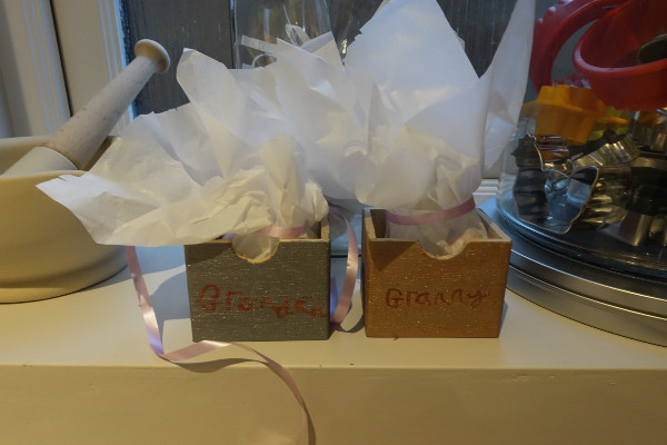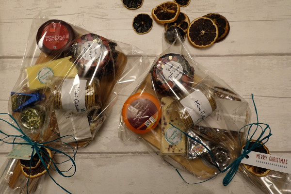 I always try and make the gifts I give to my closest friends and this year I made up a mini cheese board for each of them with a selection of cheeses, oat cakes and chutney using a paddle board I bought from Ikea and covering the display with a large cellophane roasting bag.