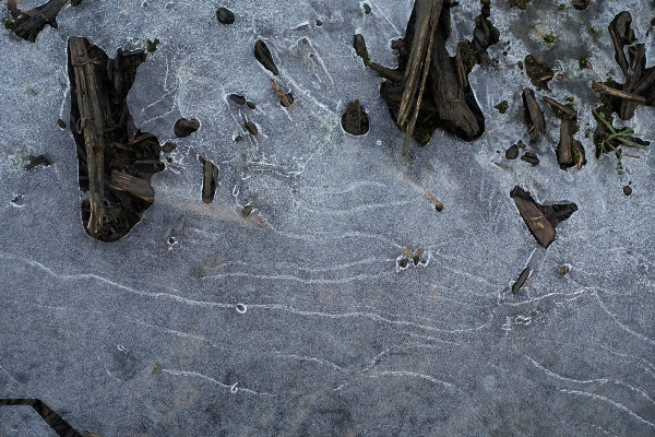 On New Year’s day we had a walk at a local nature reserve. At barely above freezing the ground was hard and each of the puddles had a skim of ice with some quite superb patterns – it was irresistable to crack like popping bubble wrap.