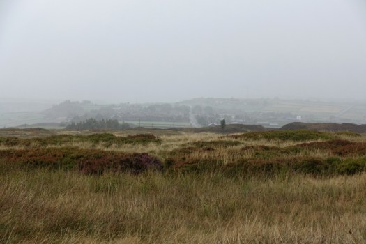 We had not gone far from home when we stopped the car to have our picnic on the moors high above the Holme Valley were much of The Last of the Summer Wine was filmed. The view is quite spectacular and made more atmospheric today because of the mist.  The wind up here was quite strong, buffeting the car as we ate.