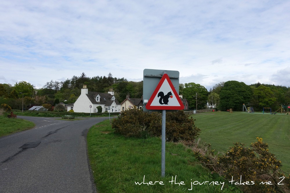 It is a haven for the red squirrel;Â sadly we saw none on our visit but I just love the way the locals in this area make the road signs their own and have added a cheeky little apple sticker – often the cow signs have been adapted to resemble the belted galloways with the white band.